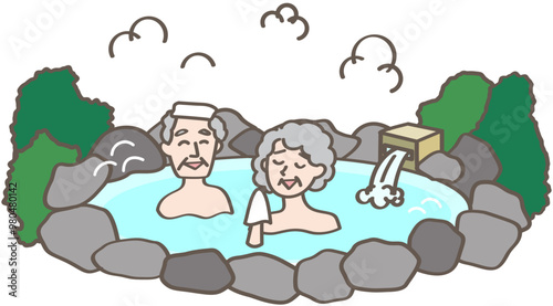 温泉に入る人々