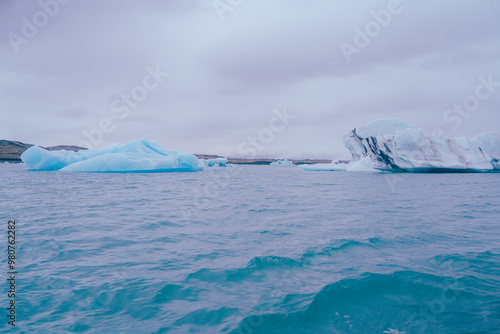 アイスランドのヨークルスアゥルロゥン氷河湖に浮かぶ氷