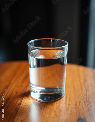 木製のテーブルの上のグラスに入った水