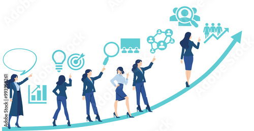 経営戦略を考えるビジネスウーマンのイラスト