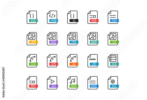 File associations. Thin line linear pictograms on white background