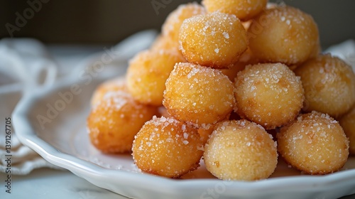 Filipino yema balls golden custard candies rolled sugar stacked on a white ceramic tray