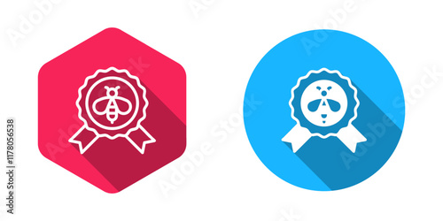 Filled and outline Best bee icon isolated with long shadow background. Sweet natural food. Honeybee or apis with wings symbol. Flying insect. Vector