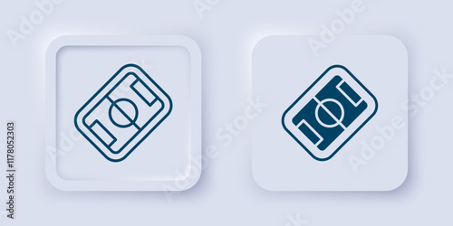 Filled and outline Football or soccer field icon isolated on grey background. Square button. Vector
