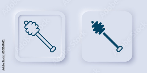 Filled and outline Honey dipper stick icon isolated on grey background. Honey ladle. Square button. Vector