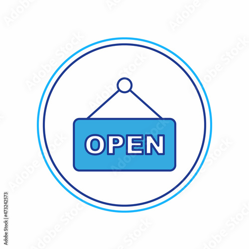 Filled outline Hanging sign with text Open door icon isolated on white background. Vector