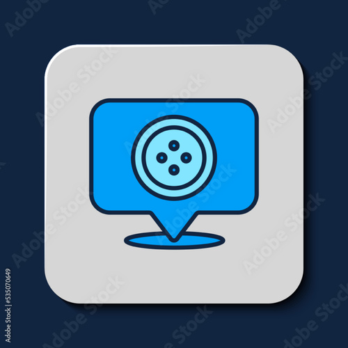 Filled outline Location tailor shop icon isolated on blue background. Vector