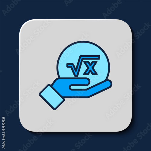 Filled outline Square root of x glyph icon isolated on blue background. Mathematical expression. Vector
