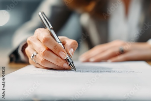 Filling Out Paperwork. Close-up of a Business Woman Signing Contract in a Legal Setting