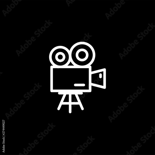 Film Camera Line Icon On Black Background. Black Flat Style Vector Illustration.