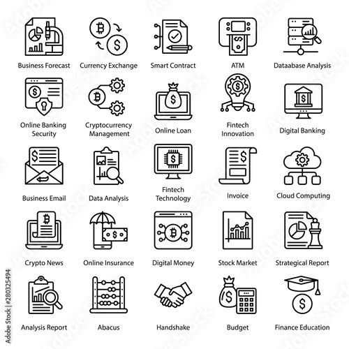 Fin Tech Startups Line Icons Set