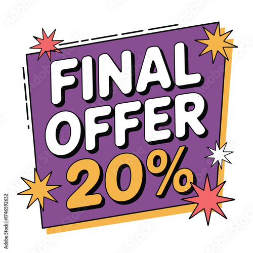 Final offer 20 off sale banner isolated on white background discount promotion with star and purple background for marketing design