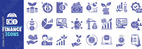 Finance icons set investment growth banking money