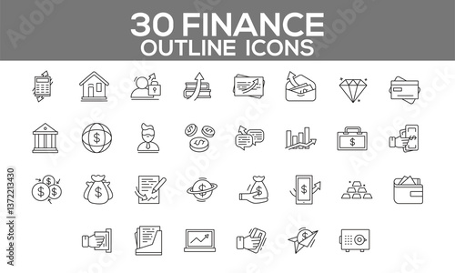 Finance Outline Icons – Banking, Investment & Economy Vector Set (Editable)