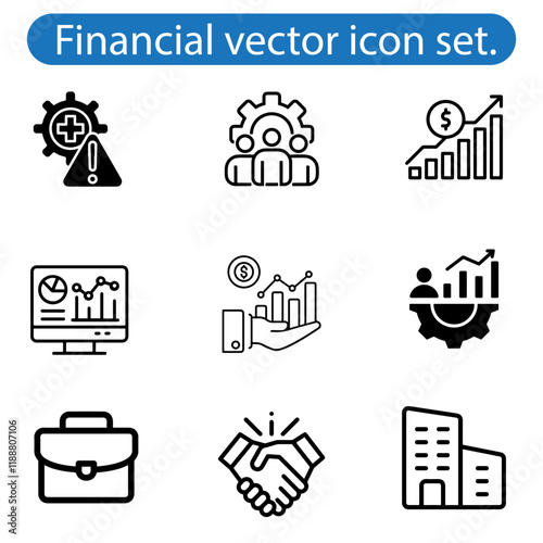 Finance vector art icons set. Money, cash, bank, check, profit, payment, wallet. Business collection. Vector.