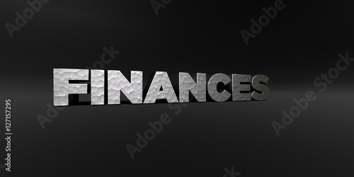 FINANCES - hammered metal finish text on black studio - 3D rendered royalty free stock photo. This image can be used for an online website banner ad or a print postcard.