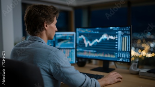Financial advisor using virtual assistant to track investments and manage portfolios, symbolizing fintech innovation, smart analytics, and AI-driven decision-making in modern finance. cinematic