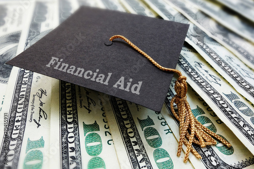 Financial Aid graduation cap on money