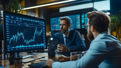 Financial Analysts Reviewing Market Data on Computer Monitors