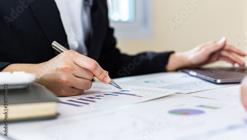 Financial businessmen analyze the company's performance and income and calculate the real-estate income tax, Account analysis Finance and Banking concept.