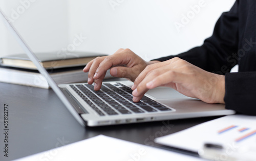 Financial businessmen use laptop to analyze marketing strategies and real estate data to reduce company taxes for their customers, Accounting and Tax concept.