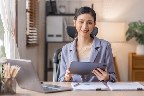 Financial Businesswomen analyze do on tablet the graph of the company's performance to create profits and growth, asian Market research reports and income statistics, Financial and Accounting concept.