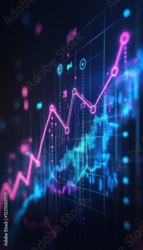 Financial Chart Showing Growth, Data Visualization, Digital Business Trends, Blue Background