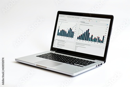 Financial charts and tables on a laptop screen with a white background.