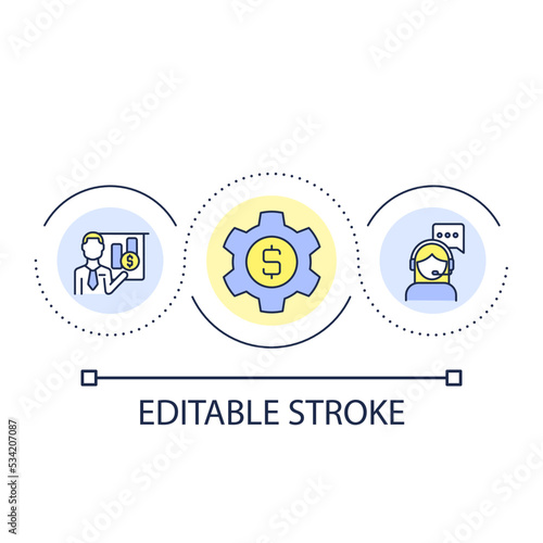 Financial consulting loop concept icon. Business analytics. Outsourcing service. Commerce abstract idea thin line illustration. Isolated outline drawing. Editable stroke. Arial font used