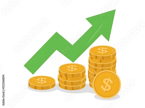 Financial Growth: Ascending Profits Visualized with Stacked Coins and Upward Trending Arrow