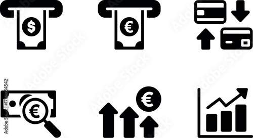Financial icons depicting money and currency isolated