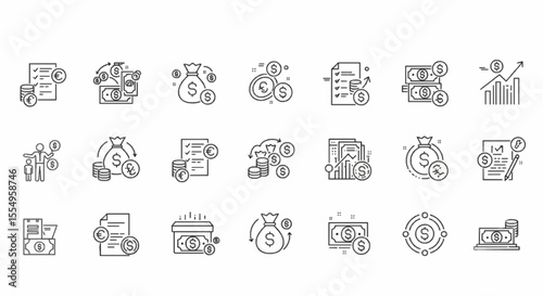 Financial Management Line Icons Set - Money, Banking, Investment and Business Vector Collection