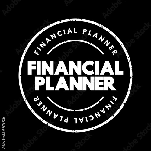 Financial Planner - helps clients meet their current money needs and long-term financial goals, text concept stamp
