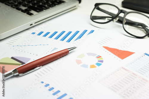 FINANCIAL SERVICE concept as concept. The charts and summary number shows about "Business statistics and Analytics value" for many market as Forex, Commodities, Equities, Fixed Income Markets.