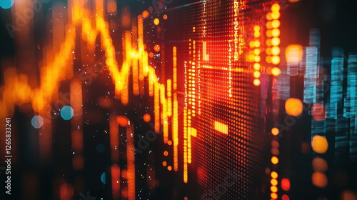 Financial stock chart displayed on a glowing screen with macro focus at nighttime