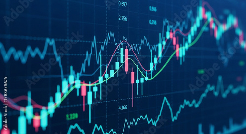 Financial Stock Market Candlestick Chart with Moving Averages and Data