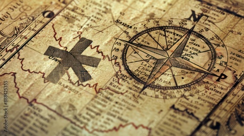 financial treasure map, with X marks over key investment opportunities and routes drawn through historical market trends