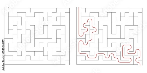 Find right way puzzle game with the solution. education logic game for kids. labyrinth maze game. simple logic game. puzzle for children