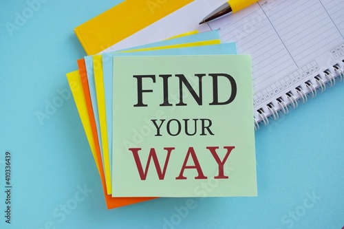 Find your way text message written on colorful sticker notes. Business personal life style motivation concept