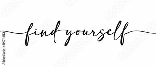 Find Yourself - Motivational phrase continuous one line calligraphy inscription. Minimalistic handwriting with white background.