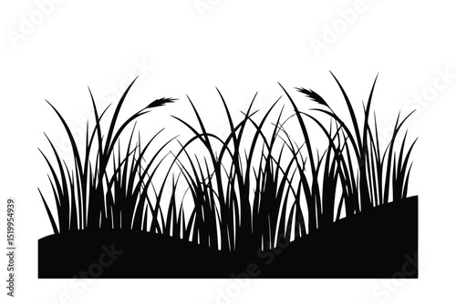 Fine line landscape drawing with horizon and soft wild grasses vector art illustration