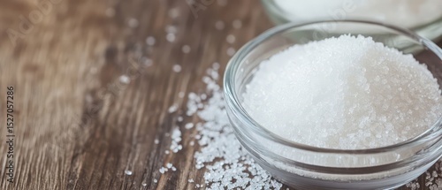 Fine sugar in glass bowls on rustic wooden surface