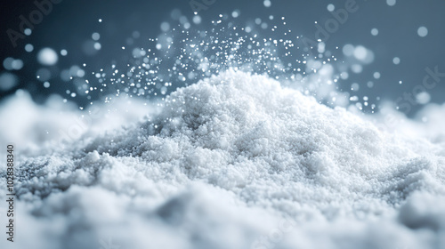 Fine White Powder Scattered in Air, Resembling Flour or Sugar, with Delicate Granules and Ripples, in a Serene Indoor Setting