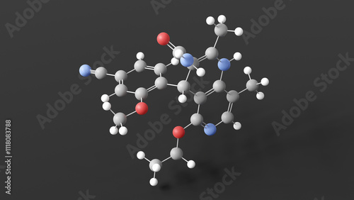 finerenone molecule 3d, molecular structure, ball and stick model, structural chemical formula antihypertensive