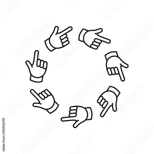 Finger circle frame. Pointer with hands round border design