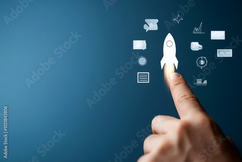 Finger Launching Digital Rocket with Futuristic Icons