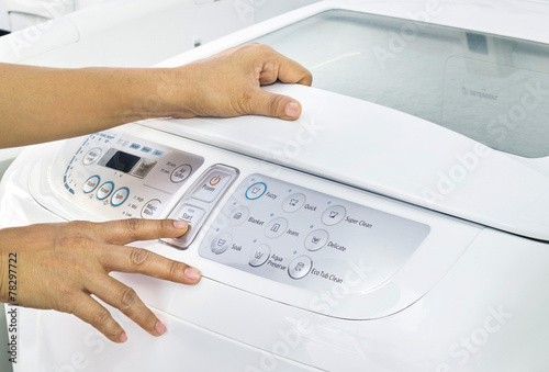 finger press button start on white washing machine