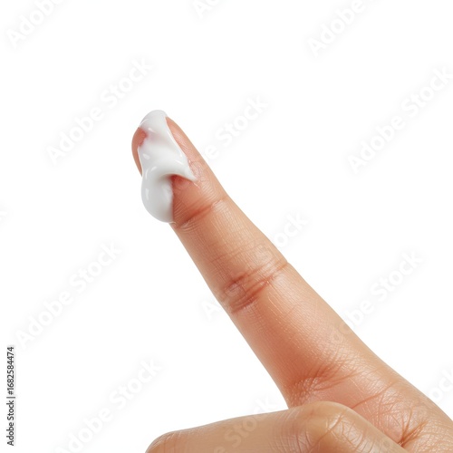 Finger with dollop of cream, skincare texture macro