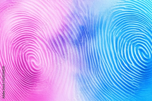 Fingerprint Abstract Design - Colorful abstract image of two fingerprints, pink and blue, blending together. Unique texture and pattern.