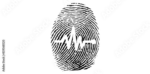 Fingerprint Line Icon, Identity Symbol For Graphic And Web Design, Identification Sample With Heart Beat Graph Vector Illustration.